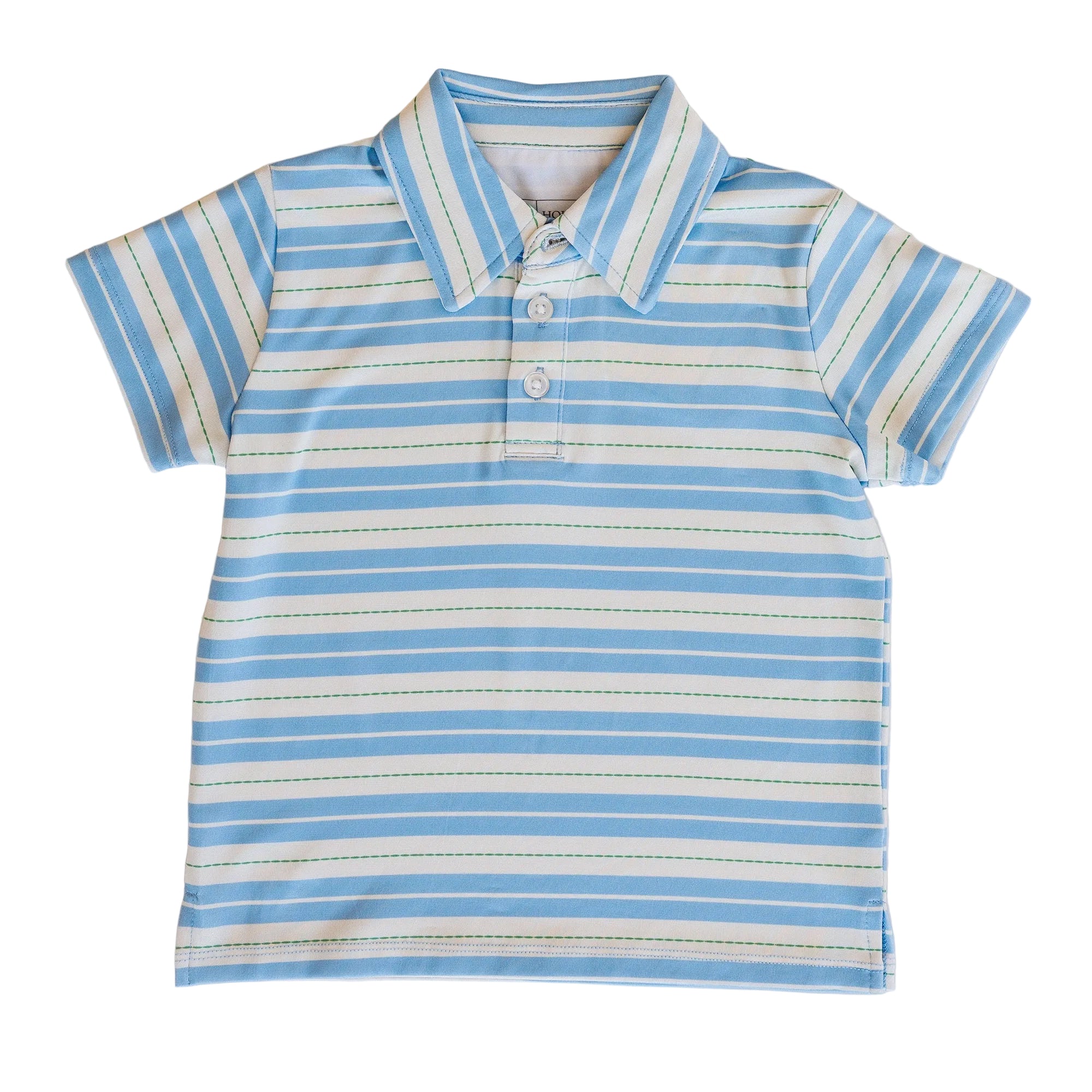 A timeless staple with everyday polish, the Kyle Polo in our Green & Blue Ticking Stripe brings classic style to warm-weather dressing. Designed with a structured collar and easy performance feel, this polished essential keeps him looking sharp from playdates to picture day!