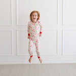 A merry pink twist on a holiday classic! These bamboo PJs are soft, stretchy, and sprinkled with happy snowmen and festive trees. Perfect for Christmas morning photos or snuggling by the fire!